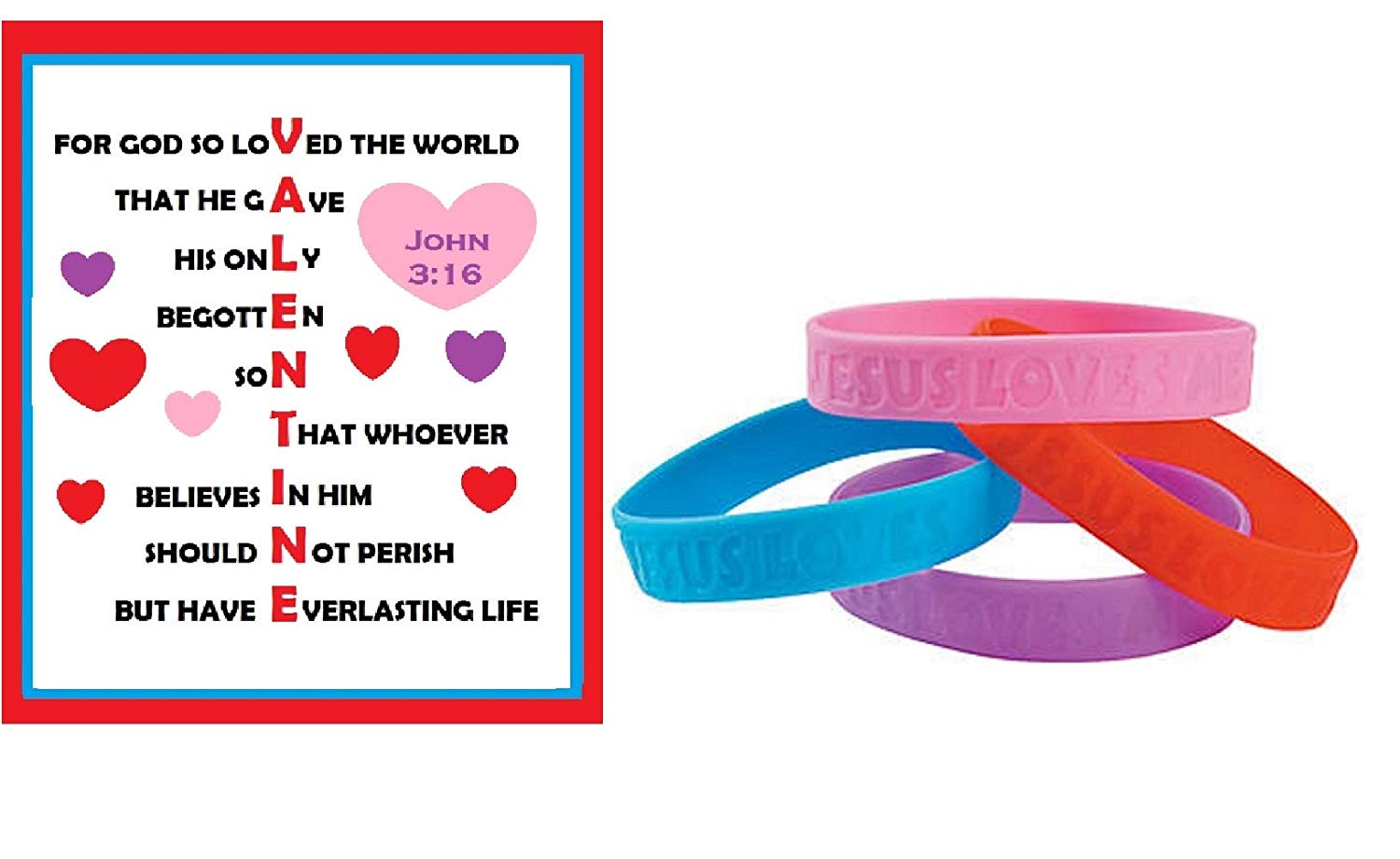 John 3:16 Red Hearts Valentine's Day Bookmarks With Heart Pencils (48 Pieces)